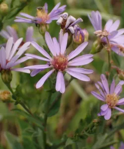 A shorter member of the Aster family, Smooth Aster offers both similar visual appeal and ecological benefits to gardens and landscapes as New England Aster but with less overall height. Like other Asters and Goldenrods, its pale lavender to blue flowers bloom from late summer to fall and provide a valuable nectar source for pollinators when many other plants have finished flowering. This aster typically grows to a height of 2 to 5 feet, and thrives in full sun to light shade.