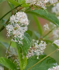 New Jersey Tea is a shrub native to most of eastern North America. Thriving in full sun to light shade, it adapts well to various soil types, including well-draining sandy, loamy, and rocky soils. Once established, it displays impressive drought tolerance, making it ideal for water-wise gardens. This deciduous shrub grows to a compact 2 to 3 feet in height and spread. Its oval-shaped, bright green leaves turn yellow or reddish in fall, while its fragrant, creamy-white to pale pink flowers appear in late spring to early summer, attracting pollinators like bees and butterflies. New Jersey Tea get its name from the time of the American Revolution when this plant's leaves were used as a temporary imported tea substitute.