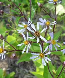 White Wood Aster is a delicate yet resilient native wildflower that favors woodlands and shady gardens with its understated beauty. This perennial plant features dainty, daisy-like white flowers that bloom in late summer to early fall, providing a late-season burst of color when many other plants have finished flowering. Reaching a height of about 1 to 3 feet, White Wood Aster is known for its slender stems and broad dark green leaves, which create an attractive backdrop for its starry blooms.