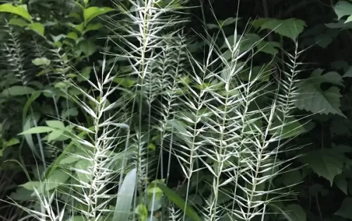A shade-tolerant grass that's a great addition to any woodland border or shady garden. Bottlebrush Grass's broad leaves green up early in spring and produces a silvery, bottlebrush-like seed stalk that looks great all winter. Can help fill in gaps in the garden but does not spread too aggressively. Young plants are vulnerable to deer, which tend to leave this plant alone once it is full-size.