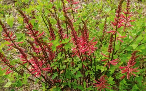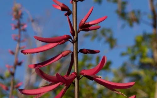 Coral Bean, also known as Cherokee Bean, is a distinctive plant noted for its bold, bright red flowers that bloom in spring and early summer, offering a rich nectar source for hummingbirds and butterflies. Native to the extreme Southeast, Coral Bean grows as a shrub or small tree, and can reach a height of 6 feet or more. After flowering, it produces elongated seed pods that open to reveal bright red beans, which remain on the plant through winter, providing visual interest and food for wildlife (although they are toxic to humans if ingested). Coral Bean is drought-tolerant once established and thrives in well-drained soils and full sun, making it ideal for xeric gardens, naturalized areas, and as a focal point in wildlife-friendly gardens.