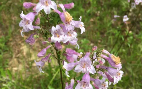 Eastern Smooth Beardtongue - also called Pink Beardtongue - stands tall with subtle elegance, sending up showy spikes of lavender to pale purple flowers in early summer. Its tubular blooms are beloved by hummingbirds and bumblebees, while the plant’s smooth, deep green foliage adds a graceful vertical texture to the landscape. Unlike some of its prairie-dwelling cousins, this species tolerates part shade and performs well in moist, rich soils—though it can handle drier conditions once established. Its upright habit makes it a useful bridge between spring ephemerals and later-blooming summer perennials, particularly in woodland edges or shaded pollinator gardens. Though it spreads gently by seed, it’s rarely aggressive.