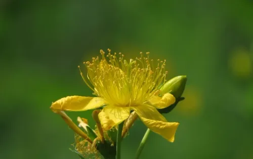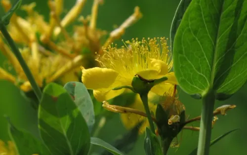 Great St. John's Wort adds a burst of cheerful yellow to the garden with its large, sunny flowers that bloom in mid-summer. This robust perennial can reach up to 5 feet in height, offering a bold vertical element to the landscape. The flowers, up to 3 inches across, feature a profusion of stamens that create a frilly, eye-catching center. It's a wonderful choice for attracting pollinators like bees and butterflies and fits well in naturalistic settings or as a background plant in perennial borders. Thriving in full sun to partial shade, it adapts to a range of soil conditions but prefers moist, well-drained sites.