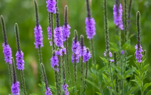 Hoary Vervain is a denizen of dry prairies and rocky soils, and this drought tolerant plant does best in poor soils. This upright plant is covered in a fine fuzz that turns the foliage an interesting pale gray green. In early summer, it produces a ring of intensely-lavender flowers that move slowly up green flower stalks. The shallow flowers are attractive to many kinds of pollinators. Leave a bit of exposed soil around the base of this plant so it can self-sow and persist in the garden.