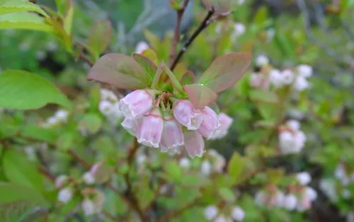 Lowbush Blueberry is a compact, spreading shrub that typically grows just 6 to 24 inches high, making it ideal for ground cover or border plantings. It features small, glossy, green leaves that turn fiery red in the fall, adding significant seasonal interest. Lowbush Blueberry puts on attractive white to pinkish flowers in the spring, which develop into small, dark blueberries by mid to late summer. You can establish your own, personal pick-your-own if the birds don't get to them first! Lowbush Blueberry thrives in acidic, well-drained soils in full sun to partial shade and is particularly noted for its ability to adapt to poor soil conditions.