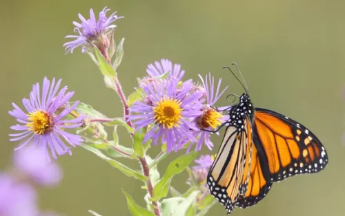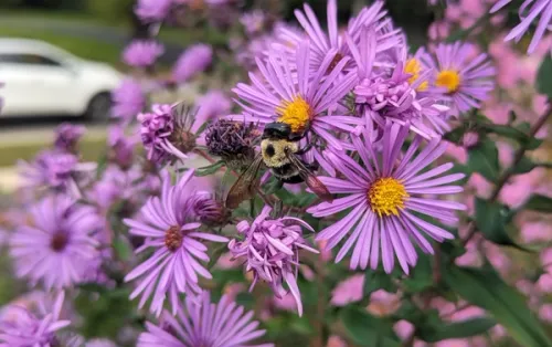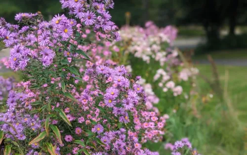 New England Aster is a robust and colorful perennial that can reach heights of up to 6 feet, although 3 to 4 feet is more common in garden settings. It features a profusion of daisy-like flowers with deep purple petals surrounding bright yellow centers. These blooms not only add a burst of late-season color but also attract an array of pollinators, including bees, butterflies, and moths, making it a vital source of nectar as autumn approaches. This aster thrives in full sun to partial shade and prefers moist, well-drained soil, making it ideal for naturalistic plantings and as part of a strategy for attracting wildlife.