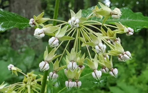 Poke Milkweed, also called Tall Milkweed, can reach heights of around 5 feet and enjoys life on partially shaded side. Its relatively large, oval leaves grow in stark contrast to its delicately drooping clusters of bright white to cream flowers, which bloom in early Summer. Like other milkweeds, Poke Milkweed provides essential support to Monarch Butterflies, which lay their eggs solely on milkweed species. Take your time with any transplants of this species as they can go into dormancy early, and tend to really start shining in their second year.