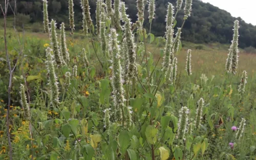 Purple Giant Hyssop is a long-blooming pollinator magnet. Plumes of white to purple flowers persist for several weeks from summer to fall, sustaining native bees, butterflies, and hummingbirds. The crushed leaves smell of anise, and its cylindrical seed heads adorn the winter garden. Purple Giant Hyssop is tall and impressive, but despite its height, it does not tend to flop over. If desired, its growth can be restrained by cutting back in early summer.