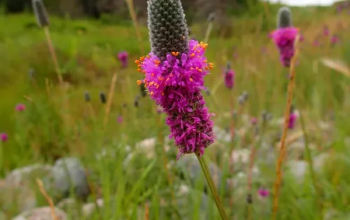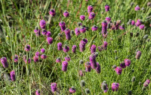 Purple Prairie Clover showcases distinctive thimble-shaped flowers atop upright, wiry stems. Uniquely drought-tolerant, it will thrive even in arid conditions. A member of the legume family, it's also able to add nitrogen to the soil, allowing it to flourish in and improve the quality of low-fertility soils. Its ornamental, threaded foliage adds visual allure throughout the season. Purple Prairie Clover is a great addition to a shorter planting, reaching heights of only one or two feet. This plant requires little maintenance and once established it can live for decades.