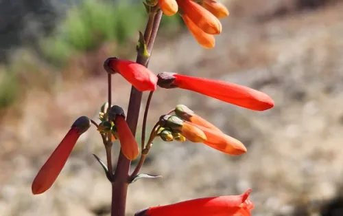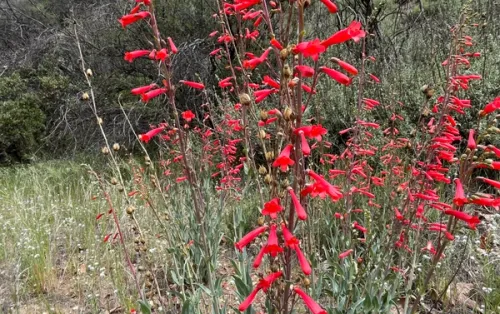 Scarlet Bugler is a vibrant perennial that commands attention with its bright red, tubular flowers. Blooming from late spring to early summer, these flowers are likely to attract many hummingbirds and butterflies, making it an excellent choice for ornamental and pollinator-focused gardens alike. Thanks to its great drought tolerance, Scarlet Bugler will thrive in full sun and well-drained soils, making it ideal for xeriscapes, rock gardens, and slopes.