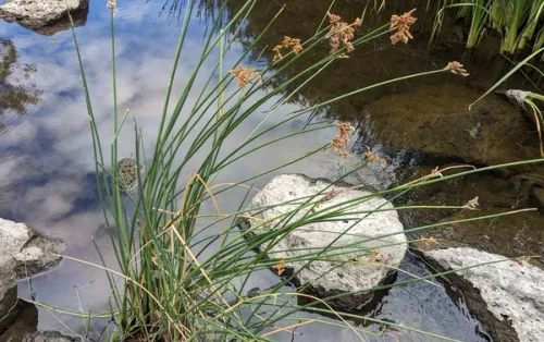 Softstem Bulrush is a perennial that forms dense clumps of cylindrical, soft stems that can reach up to 8 feet in height. This aquatic plant is native to marshes, shores of lakes and streams, and other wetland areas where it stabilizes the soil and provides excellent habitat and food sources for a variety of wildlife, including birds and amphibians. During the summer months, it produces small, brown, clustered flower heads at the tips of the stems, which are not only important for seed production but also add a textural contrast to the landscape.