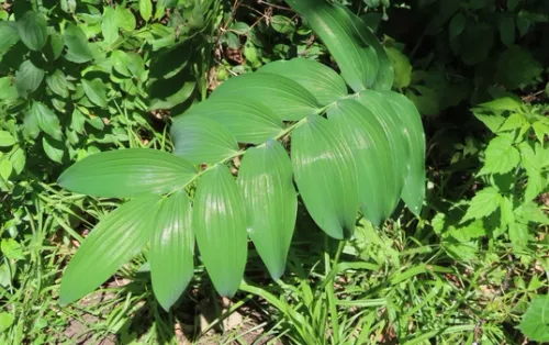 Solomon's Seal is a relatively well known shade perennial thanks to its unique and graceful structure and distinctive foliage. This plant's arching stems can reach up to 3 feet in length almost entirely lined with pairs of small, tubular, greenish-white flowers in late spring. As the season progresses, these blooms may give way to small, dark berries that provide autumn interest and feed local wildlife. Solomon's seal thrives in part to full shade, preferring moist, well-drained soil rich in organic matter. It's perfect for naturalizing under trees or pairing with other shade-loving perennials.