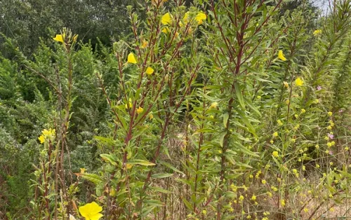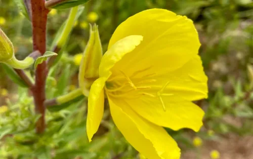 True to its name, Tall Evening Primrose can put on some series vertical growth: spikes covered in bright, yellow flowers, can reach up to 5 feet tall. Unlike many other flowering plants, these blooms open in the late afternoon to evening, emitting a sweet fragrance that attracts later day and night-pollinating insects such as moths. Thrives in full sun and well-drained soils, making it an excellent choice for borders, wildflower meadows, or as a backdrop in a cottage garden setting.