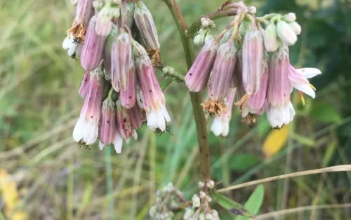 White Lettuce, also known as White Rattlesnake Root, is a perennial herb notable for its lofty growth and distinctive foliage. Though typically around 3 feet, it can reach heights of up to 5 feet under optimal conditions, making it a striking addition to any garden setting. The plant features long, slender stems with deeply lobed, light green leaves that have a slightly toothed margin. In late summer to early fall, it produces loose, branching clusters of small, white flowers that resemble daisies. These blooms are highly attractive to a variety of pollinators, including bees and butterflies. White Lettuce prefers partial to full shade and thrives in moist, well-drained soil, making it suitable for woodland edges, native plant gardens, or as a background plant in mixed borders.